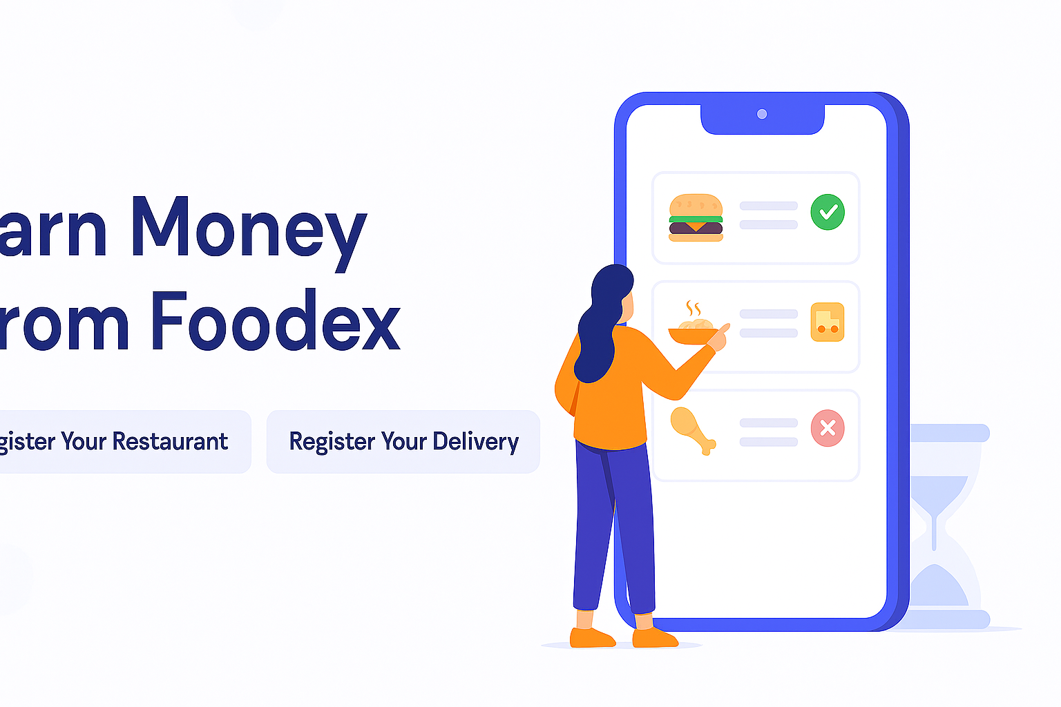 Download Delivery Man App from Play store & App Store and Register as Delivery Man to provide food all over the area.